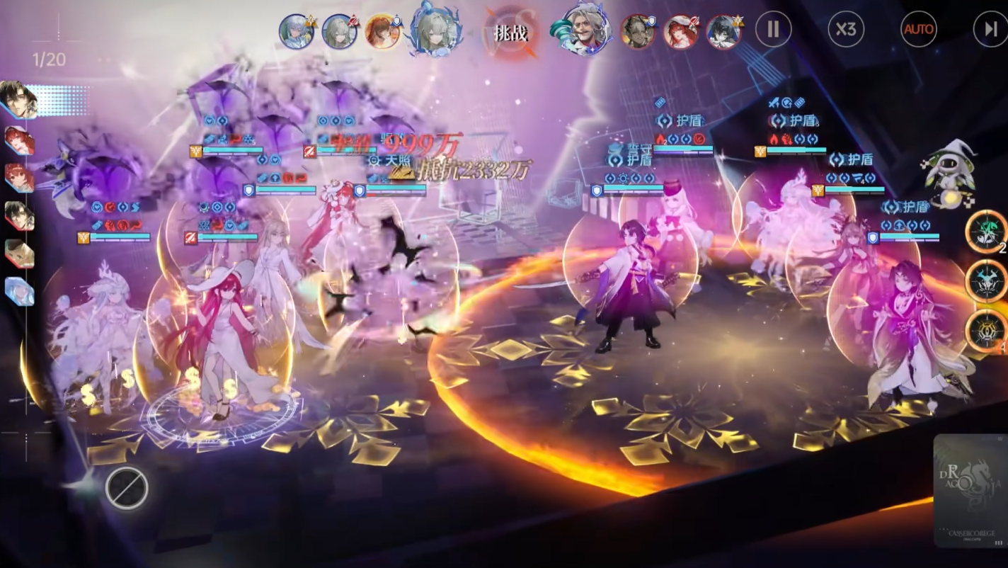 作为SSR级辅助型龙王,康斯坦丁专属言灵为“烛龙”。普攻【火祭】对单体目标造成100%法术伤害;主动技能可对敌方全体发动攻击,造成96%法术伤害,并附带双重概率效果:30%几率削减目标1–2点灵值,30%几率施加持续2回合的【全体伤害下降】状态。该机制直接限制敌方技能释放频率与整体输出效率,属高阶功能性压制手段。