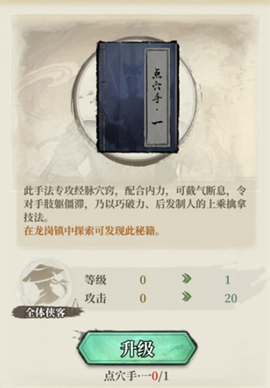 3、每次挑战成功,侠客会用他的【秘籍】回礼,此时玩家可以到【修行-秘籍】中使用秘籍提升队伍战斗力。