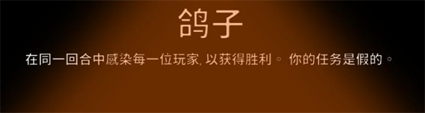 鸽子的技能主要是在同一回合中感染每一位玩家,以获得胜利。你的任务是假的。