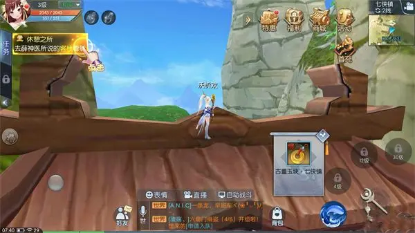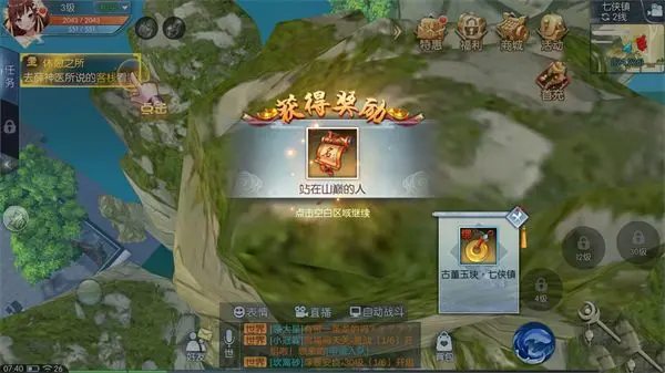 4、七侠镇外的最高的石头上,昨天寻找赵心怡时乱跳石头无意间发现的(124,226)