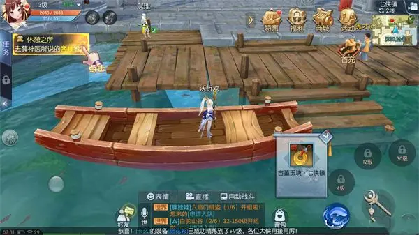7、 在七侠镇里面一个船的中心(230,163)