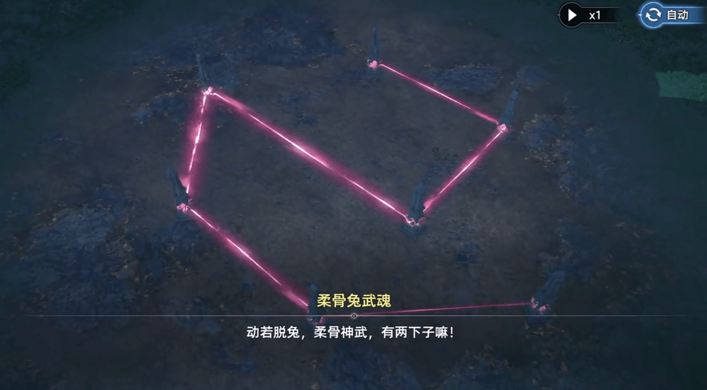 斗罗大陆猎魂世界诺丁城中的小舞兔子试炼需要在斗灵村的右边,需要用激光把所有的石柱相连,所有石柱连接的顺序是顺时针1下——顺时针1下——顺时针4下——顺时针3下——逆时针1下——逆时针1下即可通过试炼。