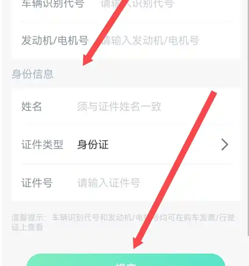 在弹出的页面中,输入车辆信息,点击下面的提交即可。