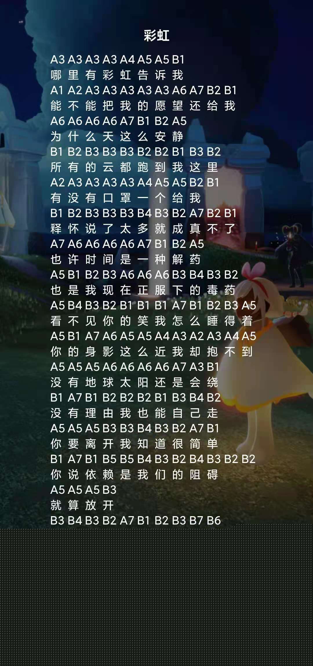 摩尔庄园手游彩虹,是命运呼叫转移里面的歌,哪里有彩虹告诉我,缓缓流动的声音,带着淡淡的忧伤,缠绵耳畔,轻轻诉说,摩尔庄园彩虹怎么弹?一起看看摩尔庄园手游彩虹钢琴谱吧。