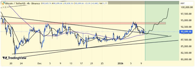 比特币仍困于狭窄但技术面关键的区间,多空双方均未取得决定性优势。92,000美元附近的受阻强化其作为突破阈值的重要性,而上行支撑的持续防守则维护着整体看涨框架。