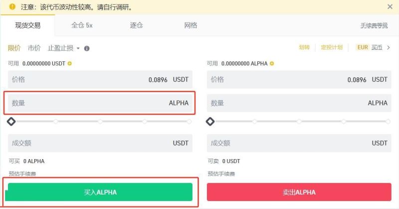 8、填写买入数量,点击【买入ALPHA】即可完成ALPHA币交易