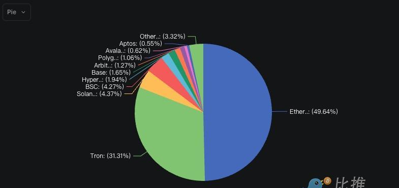 数据显示,以太坊占据了49.61%的稳定币市场份额,主要用于DeFi、支付和清算。相比之下,Tron上的稳定币多用于亚洲CEX内部转账,难以触及真实经济。