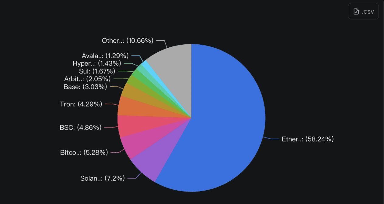 Solana生态系统在2024-2025年经历了爆炸式增长,目前占据了总区块链TVL市场份额的7.16%,使其成为继Ethereum占有58.28%主导份额后的第二大区块链生态系统。