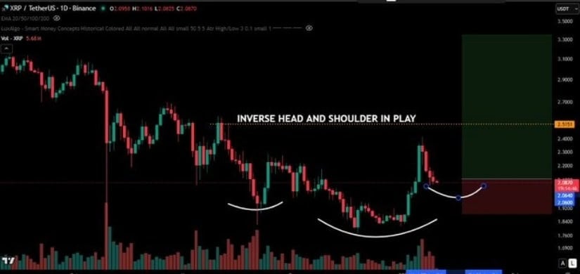 XRP ETF单日流入493万美元 关键支撑区与潜在头肩底反转形态引关注。来源:@im_BrokeDoomer via X