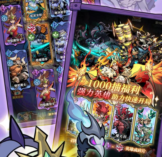 本作采用深度卡牌养成体系,英雄不仅可通过抽卡获取,还可通过突破、技能升级、天赋树配置、觉醒进阶及装备搭配实现多维强化。重复获得的同名英雄自动转化为专属培养材料,有效降低资源浪费率,进一步提升了抽卡行为的长期价值。