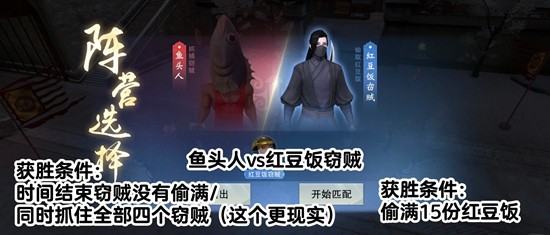 一年之期已到,于头人带着他的红豆饭又回来啦!不过这次自认为聪明的于头人想到了一个新花样,来一场“猫抓老鼠”的对抗!少侠可以选择加入于头人阵营,保护红豆饭以免遭窃,亦或是加入红豆饭窃贼阵营,躲避于头人的抓捕,窃取指定数量的红豆饭,在规定时间内完成目标的阵营获胜!准备好大干一场吧!那么这一玩法怎么玩呢?为你准备了一份攻略,一起来看看吧~