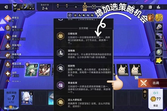 第三,选人阶段/投资策略阶段/遭遇阶段都是有钻就选,没有的话也一定要刷新。而且选角色时第一面带蓝钻红钻,第三面直接带宝钻。