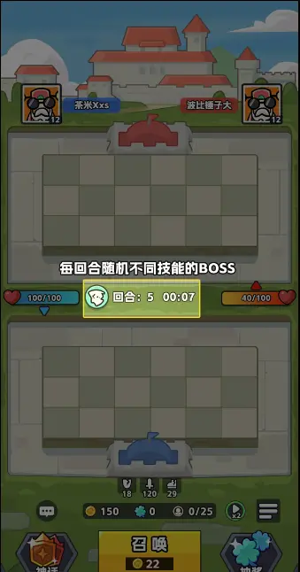 在每回合结束时合成回合BOSS,BOSS拥有强大的技能,会对战局带来更多变化