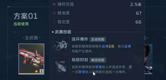 主动技能名为“连环爆炸”,发射出去的榴弹可以额外反弹2次,并且每次反弹都会产生爆炸。被动技能“劫掠时刻”则更为夸张,榴弹可以穿透敌人造成伤害,并且在第一次穿透时会额外引发一次爆炸。这两个技能在逆战未来的怪物密集场景中能产生毁灭性的连锁反应。一发榴弹先穿透首个目标触发爆炸,接着继续穿透后续敌人,最后还能反弹两次并引发新的爆炸。如果敌人站位集中,一发子弹甚至能打出五六次爆炸效果,清场效率极高。