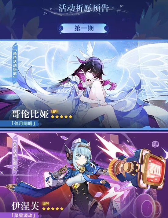 • 少女哥伦比娅(新5星水系):月反应体系核心挂水拐,0命即完全体,能转换感电/绽放/结晶反应,月系玩家必抽,非体系玩家可跳过