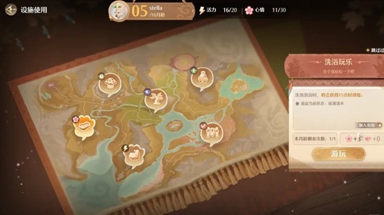 使用设施,先洗澡睡觉,记得点加入泡泡和整理床,加好感 ,然后消耗活力使用设施,先用有半价的。