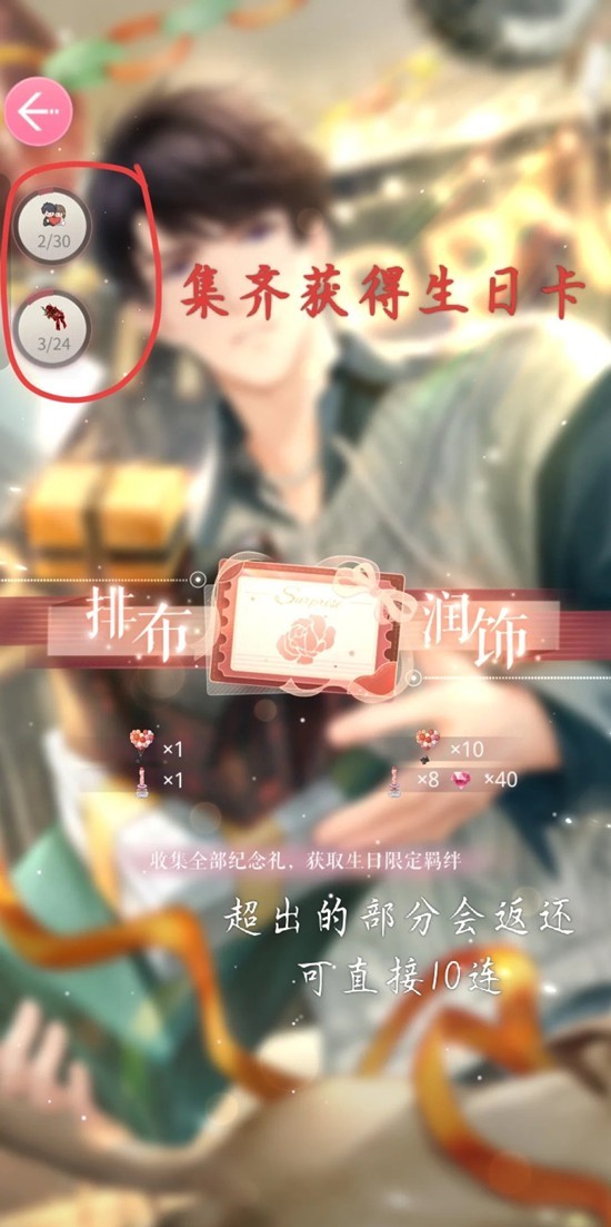 点击恋心相予获取道具(如果10连抽多余道具会自动返还)
