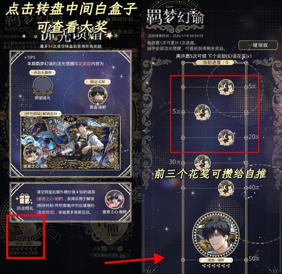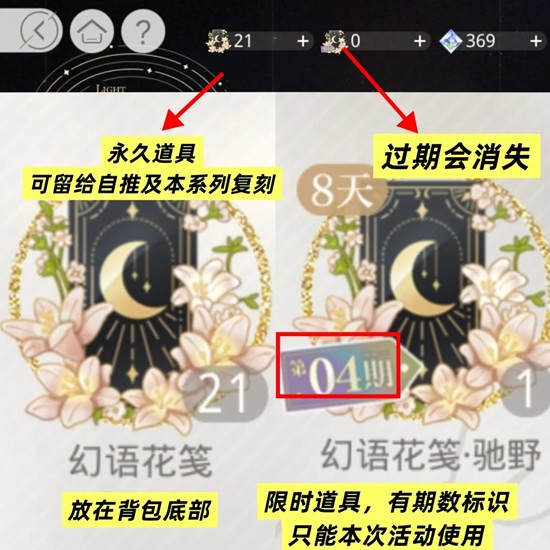 标有04期幻语花笺为本次活动限定抽数,若不使用活动结束会过期