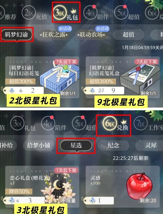 优先兑换9北极星(含6抽)&2北极星,每日一次共8天,含1抽),剩下缺的兑换3北极星(含一抽)