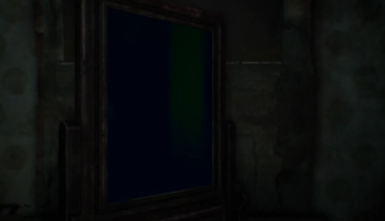 找到后跟随绿光的方向走出去,最后房间的镜子破碎,桌子上有黄铜钥匙。