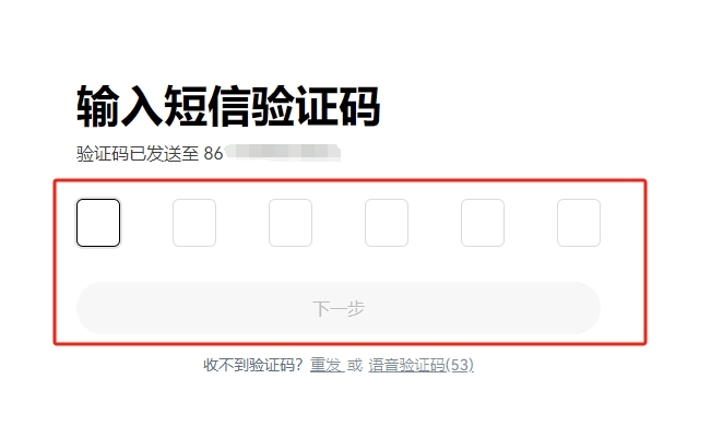 填写发送到刚刚注册邮箱或手机号码上面的6位数字验证码,点击【下一步】按钮。