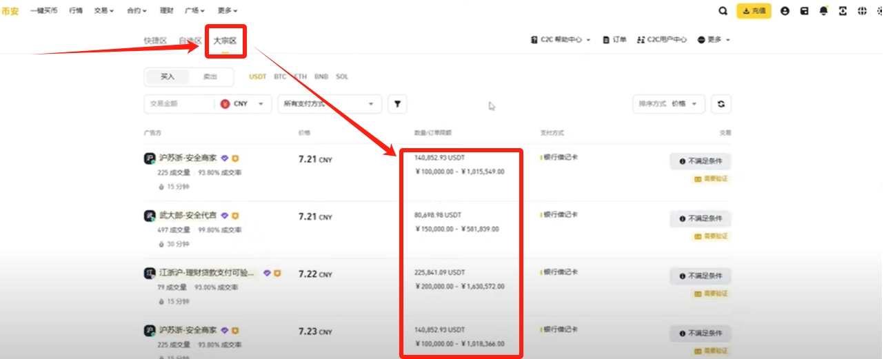 我们再来看一下“快捷区”,这里也不建议大家使用快捷区来进行买卖,因为快捷区坑比较多。它仅仅是按照市场价格给你匹配商家,但是这些商家好与不好我们压根就不知道。这些商家信誉好不好我们也不知道,所以不建议大家选择快捷区。还有就是快捷区是很容易出现冻卡的问题的,所以我们最好不要使用快捷区。