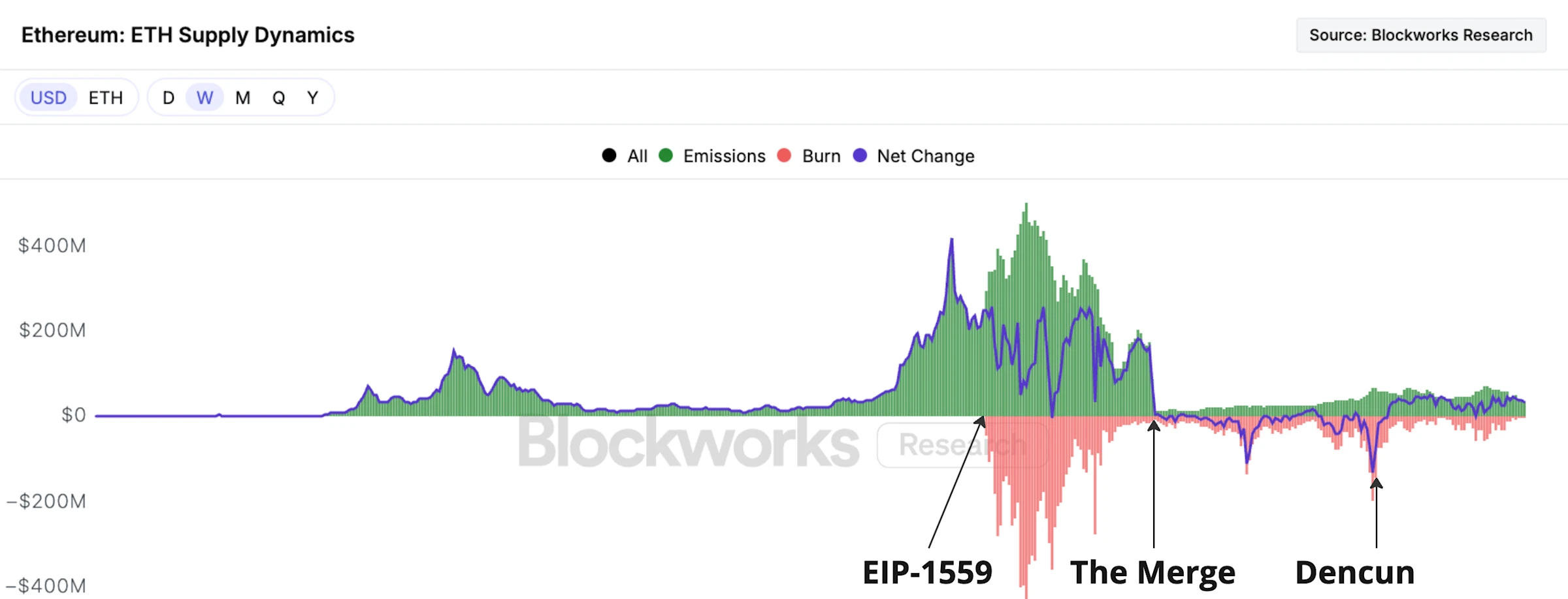 在这之后,ETH 的“净通胀率”在相当长一段时间内转为负值。