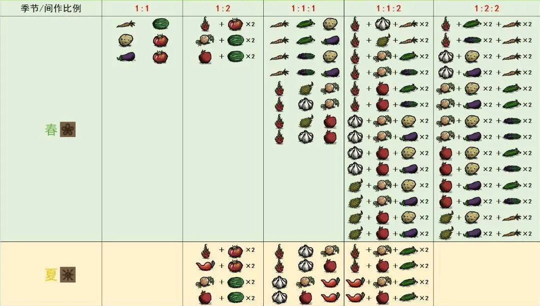 饥困荒野间作种植比例图,通过合理的间作种植在应季季节不施肥产出巨型作物