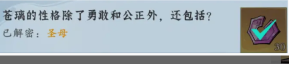 3、苍璃的性格除了勇敢和公正外,还包括?