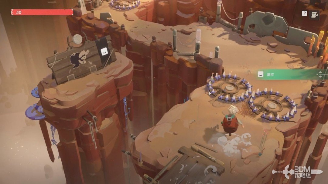 剧情结束会进入教学关。看到陷阱我们可以按空格键翻滚过去,翻滚的时候是无敌的。