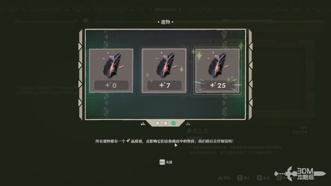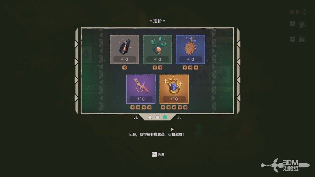 我们要根据客户不同的反应来灵活定价,遗物的稀有度越高也会更值钱。