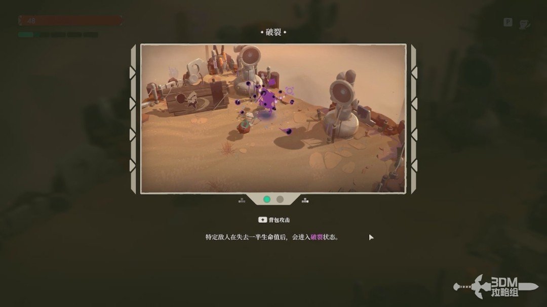 有一些敌人还可以进入“破裂”状态,这个状态实际上就是破防状态。将怪物打至半血即可触发,怪物本体会变成紫色,这个时候按SHIFT键可以将敌人击飞。