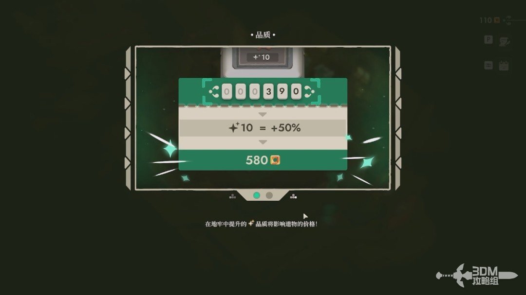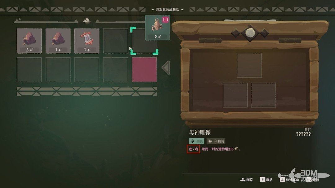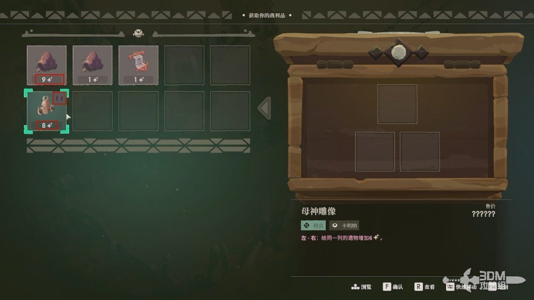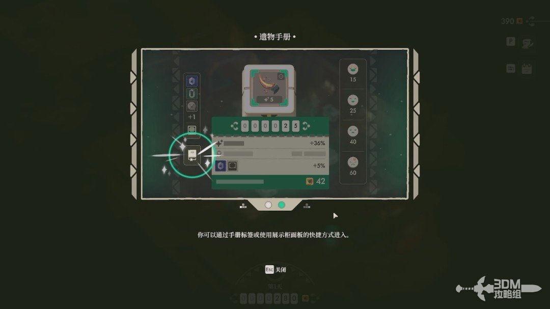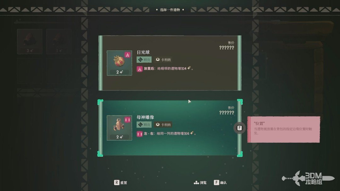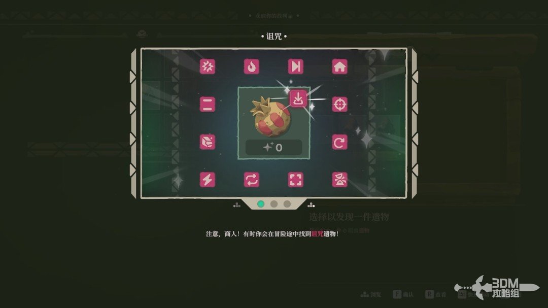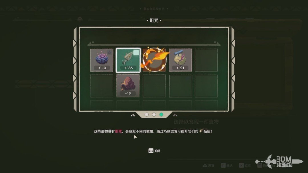 成功放置后,会给目标遗物增加相应的品质,而我们右上角的遗物“诅咒”图标也会变黑。