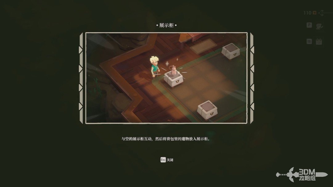 我们想卖东西需要将背包里的遗物放到展示柜上,把刚才教学关的几个遗物都清理一下。