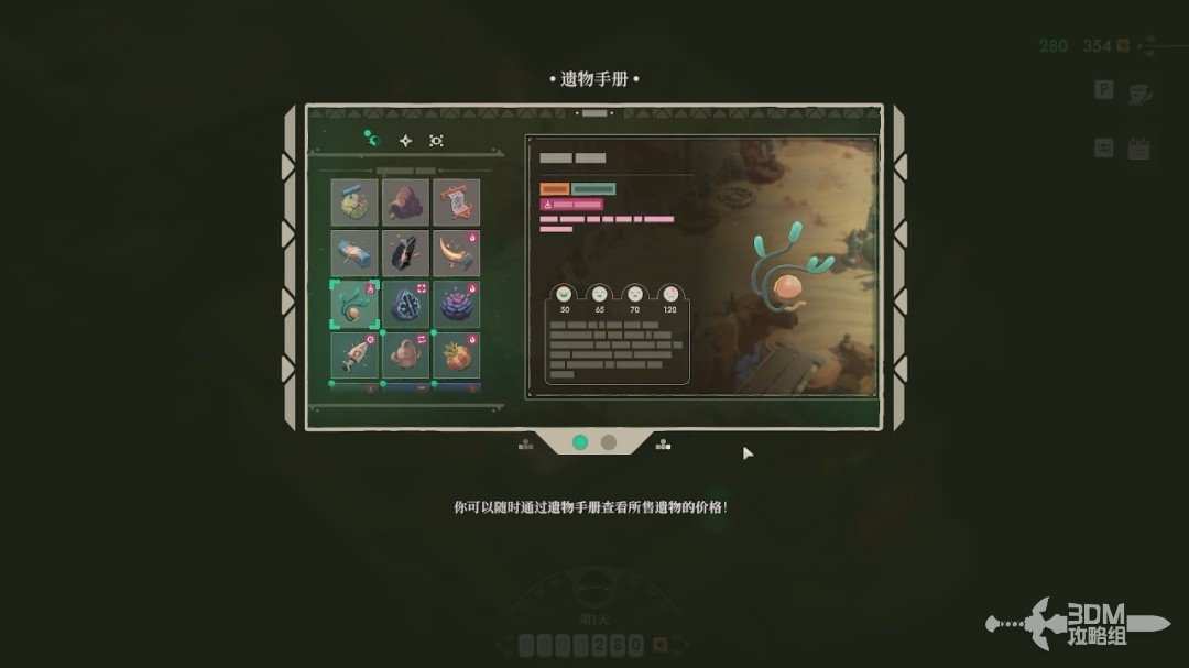 下面我们开始第一次正式售卖,把我们刚才获得的遗物摆上去(以后售卖就不过多介绍,只要记得白天过来售卖即可)。