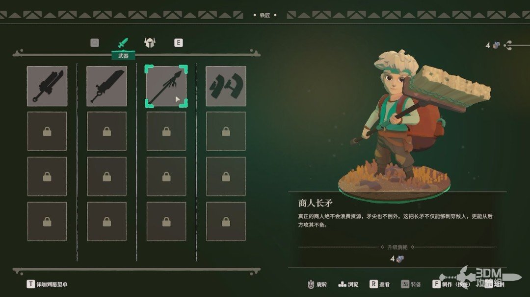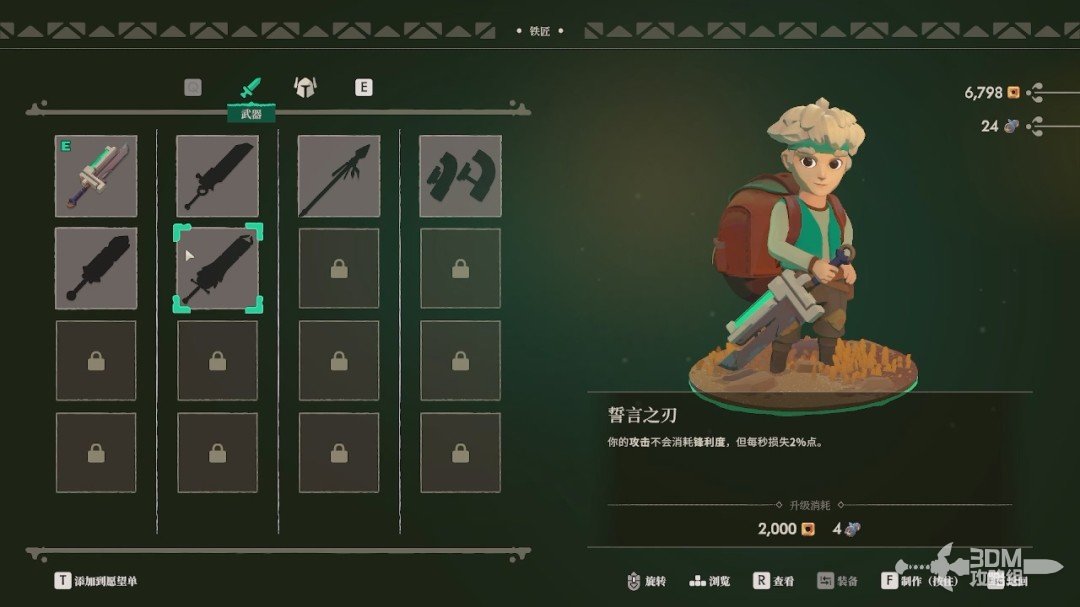 第一把武器的材料铁匠会给我们,我们选择一把自己喜欢的武器打造。