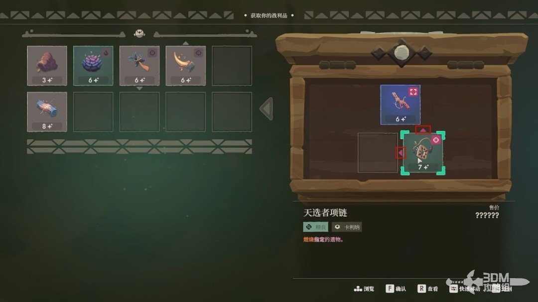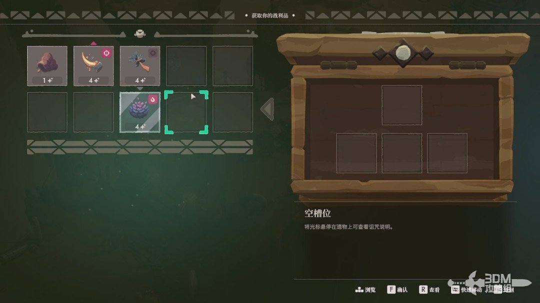 打开宝箱后遗物会在右边展示,我们要把自己需要的遗物拖到左边的背包栏里,放在左边的才能当成战利品带出去。