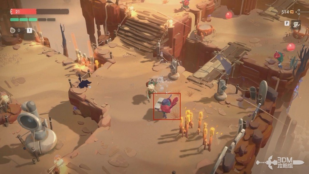 每一个关卡都有一个可以帮助我们打败敌人的“机关”。这个地区的机关是这个含苞待放的花,打它就会有类似种子的东西追踪敌人。