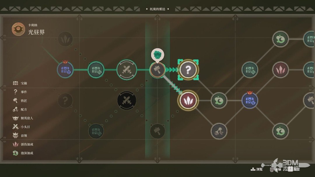 进图以后就是经典的肉鸽内容。图标的含义在左边有很详细的展示,最开始可以先对着左边的图标选择,有个别的后面会介绍。