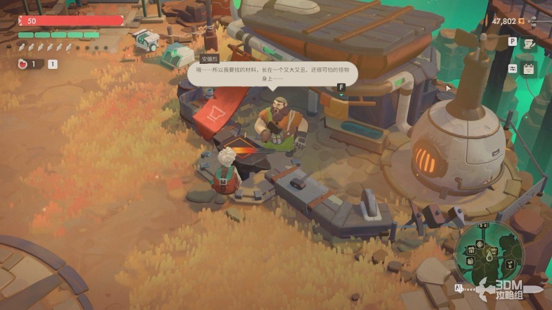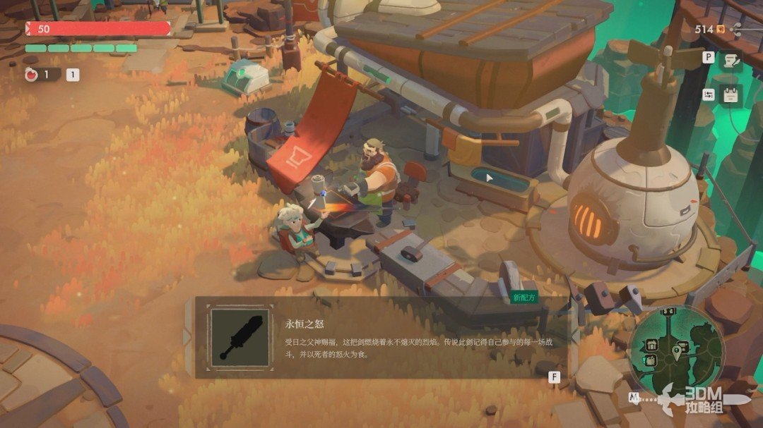 第一次从副本出来。我们先去找铁匠对话,他会给我们一个新材料。