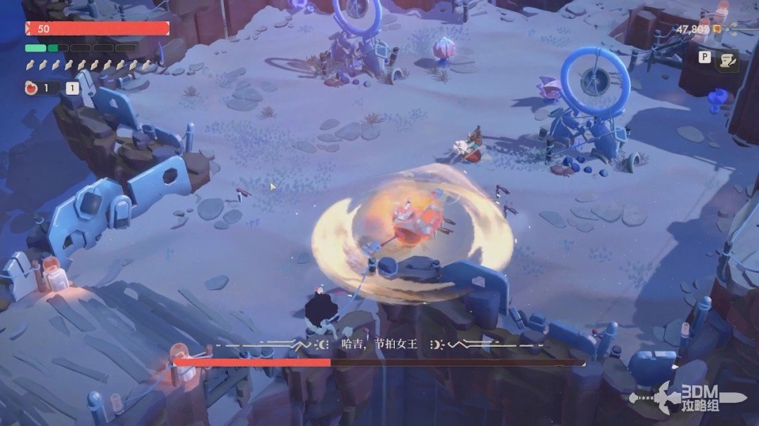 破防恢复后会再次升级它的攻击频率,这次的震荡波甚至会有三道的,更讲究我们的翻滚时机。
