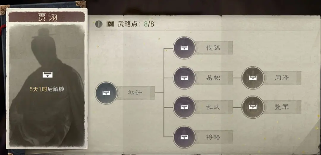 在“弈定江淮”剧本中,贾诩可习得专属天赋并解锁战法【影·折冲御悔】:战斗前3回合,使我军随机2名成员减伤12%至24%;第4回合起,为全体己方单位提供兵力回复,治疗率区间为180%–360%,数值随自身智力属性动态浮动,凸显其作为高智辅将的战略纵深价值。