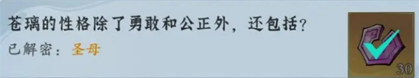 问:苍璃的性格除了勇敢和公正外,还包括?