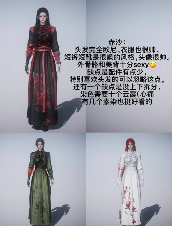 外骨骼和美背十分sexy,缺点是配件有点少特别喜欢头发的可以忽略这点。还有一个缺点是没上下拆分,染色需要十个云霞,有几个素染也挺好看的