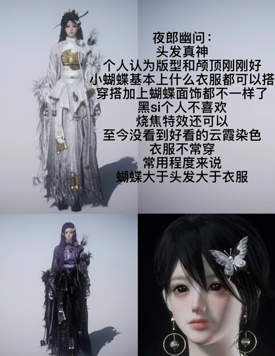 黑si个人不喜欢,烧焦特效还可以,至今没看到好看的云霞染色,衣服不常穿常用程度来说蝴蝶大于头发大于衣服