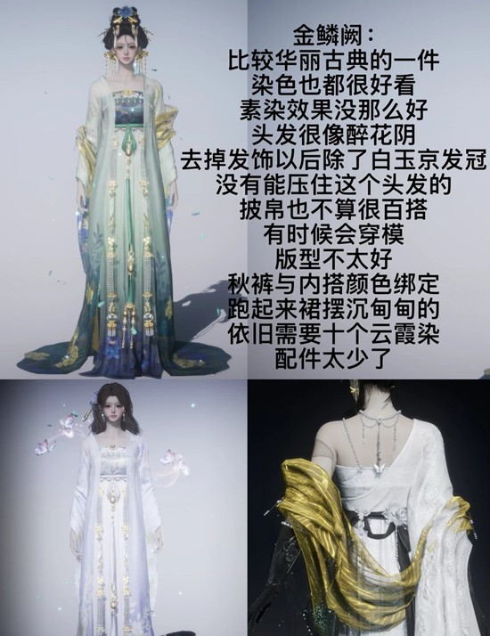 拔草点比其他衣服要严重,头发去掉发饰后颞部太扁平,鞋子挺百搭,披挂由于颜色减少了一些,百搭程度耳饰也是t0级别的