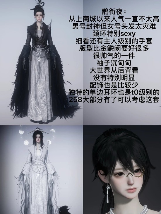 从上商城以来人气一直不太高,男号封神但女号头发太灾难,颈环特别sexy,细看还有主人级别的手套,版型比金鳞阙要好很多