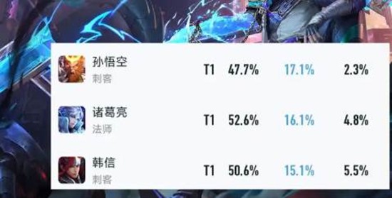 孙悟空17.1%重回第一,无双皮肤手感+技能小加强让“拿猴不六投”再次流行;诸葛亮16.1%登场率下52.6%胜率,被动法环秒人依旧无情;韩信15%登场,半肉出装把容错拉到新高度,切后排还能全身而退。