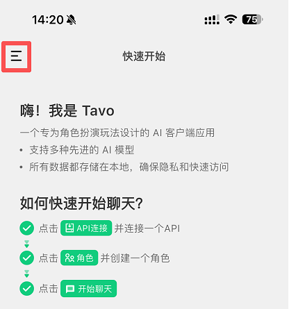 1、进入tavo后,点击“角色”按钮