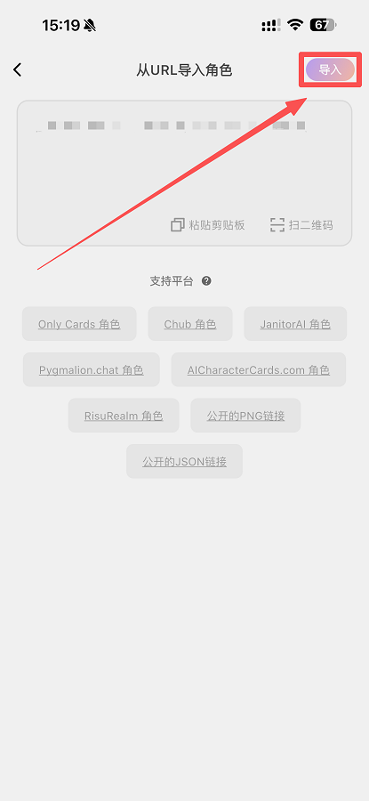 从URL导入角色,输入角色连接(仅支持单连接导入)点击“导入”